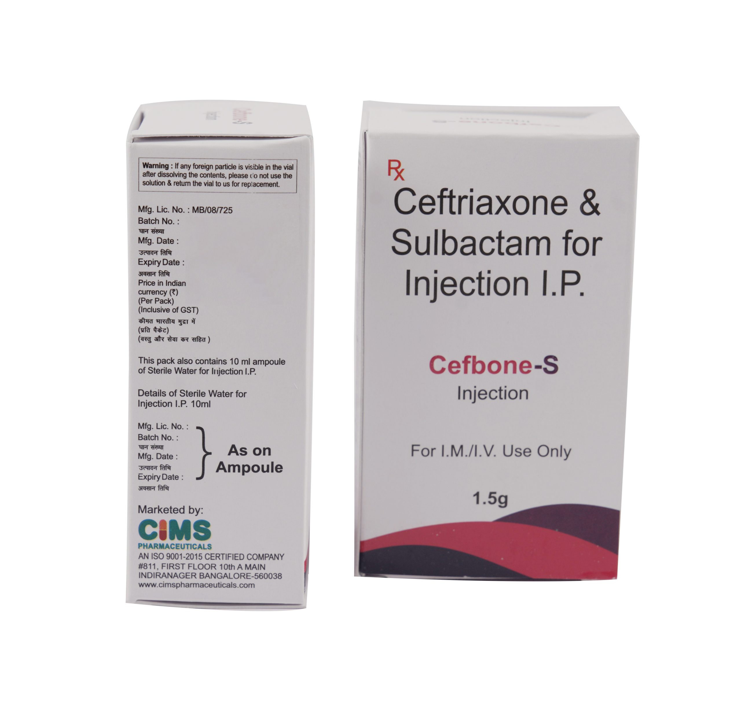 Cefbone-S Injection is a combination of two medicines: Ceftriaxone and Sulbactam. Ceftriaxone is an antibiotic. It works by preventing the formation of the bacterial protective covering which is essential for the survival of bacteria. Sulbactam is a beta-lactamase inhibitor which reduces resistance and enhances the activity of Ceftriaxone against bacteria.