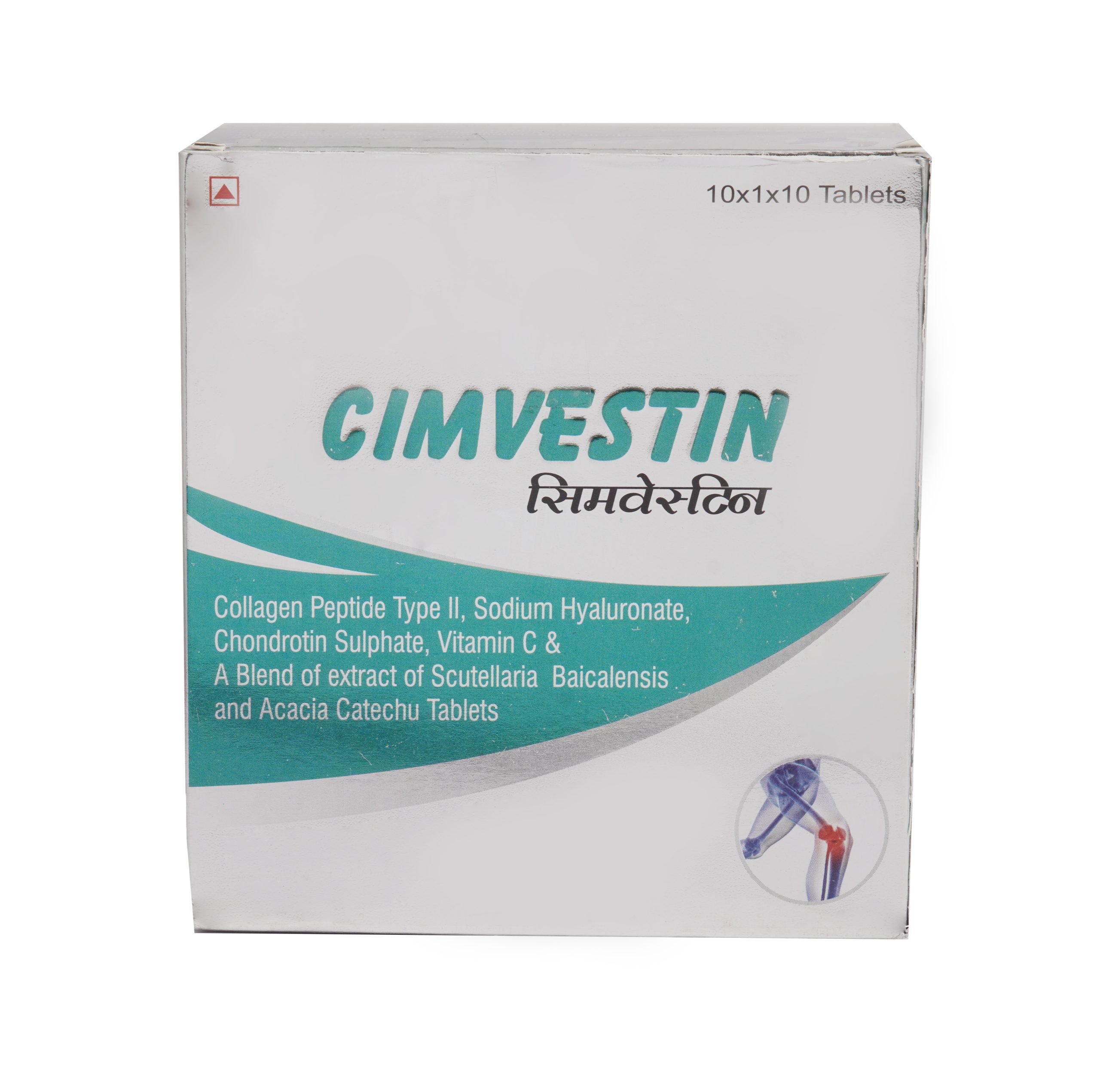 Cimvestin Tablet is a formulation that supports and improves joint health. It helps in the maintenance of joints, muscles, and cartilage. The tablet promotes the integrity of joints and bone health. It helps to increase joint mobility and flexibility. The formula helps to reduce joint stiffness, swelling and inflammation. It supports the health of the connective tissues and offers joint cushioning.