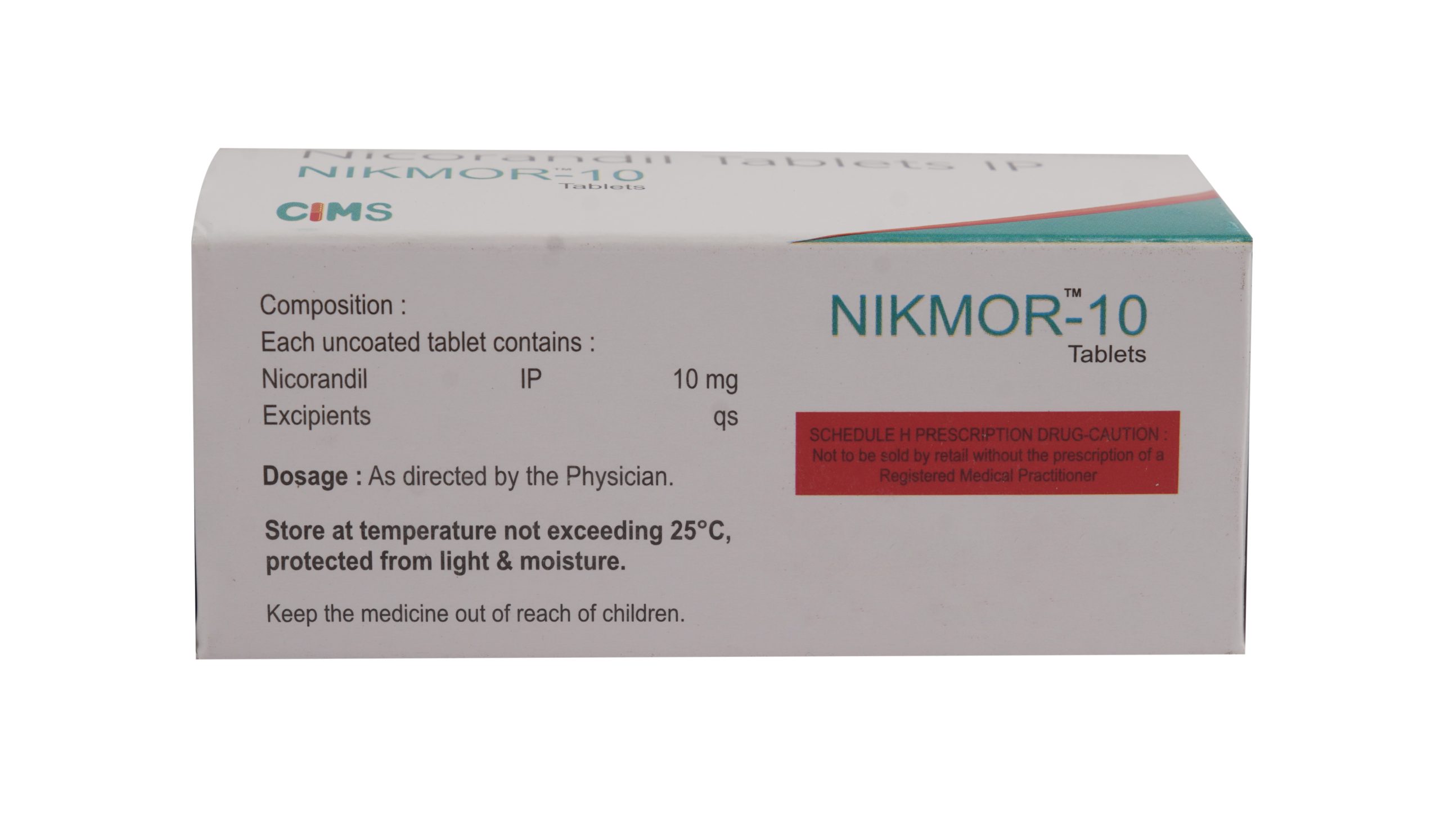 Nikmor 10 Tablet is a medicine used to prevent and treat heart-related chest pain (angina). It is usually prescribed when other heart medicines are either not suitable or have not worked. It reduces the risk of an angina attack by widening blood vessels and improving blood flow to the heart.